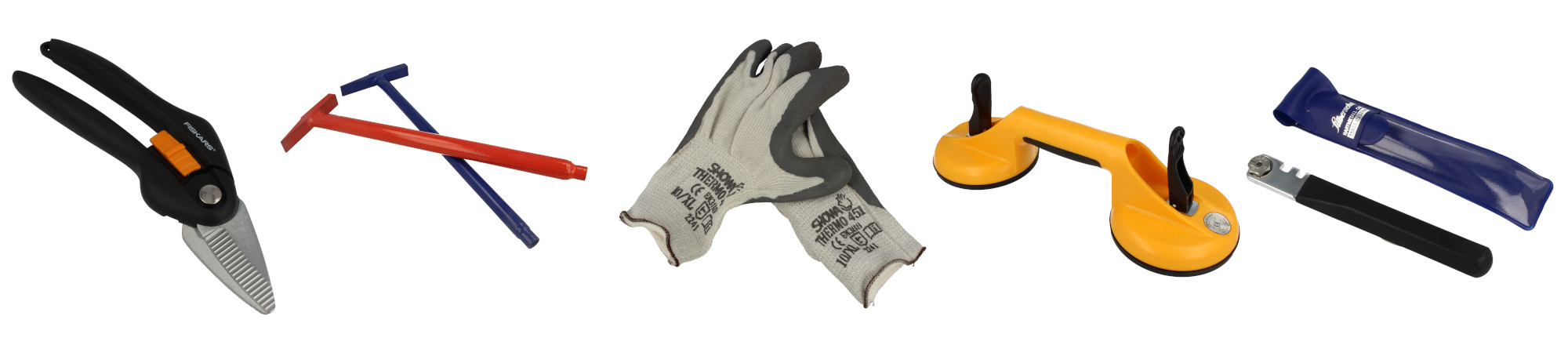 Here you will find a large assortment of parts for the maintenance of greenhouses, including glass cutters, glass hammers, mounting kit, rack grease and much more.